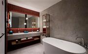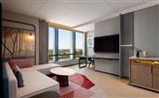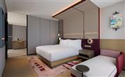 74平方米的豪华套房,以当代笔触解构传统风雅:独立客厅与寝卧分区而治,丝涟Sealy®智能大床(五区微感应弹簧)静候主客安眠。55寸电视、Nespresso咖啡机及冷藏柜成就私享仪式。亲子关怀隐于奢境:定制儿童洗护、全屋家具圆角工艺、儿童专属脚凳及座便器圈随心取用。180°全景落地窗纳四时天光,干湿分离浴室独配热带雨林花洒;邀您沉浸慵懒与鲜活共生的江南当代居住美学。