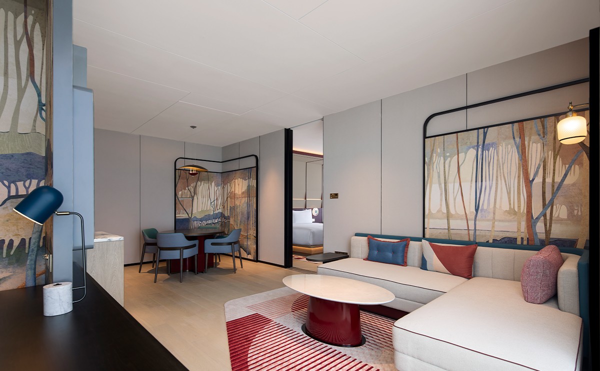 72平方米的嘉悦里庭院复式套房以江南院落为灵感,下层直通私属庭院