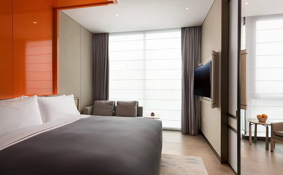 房間坐擁雙面視野:一面俯瞰天府廣場,一面遠眺城市天際線。