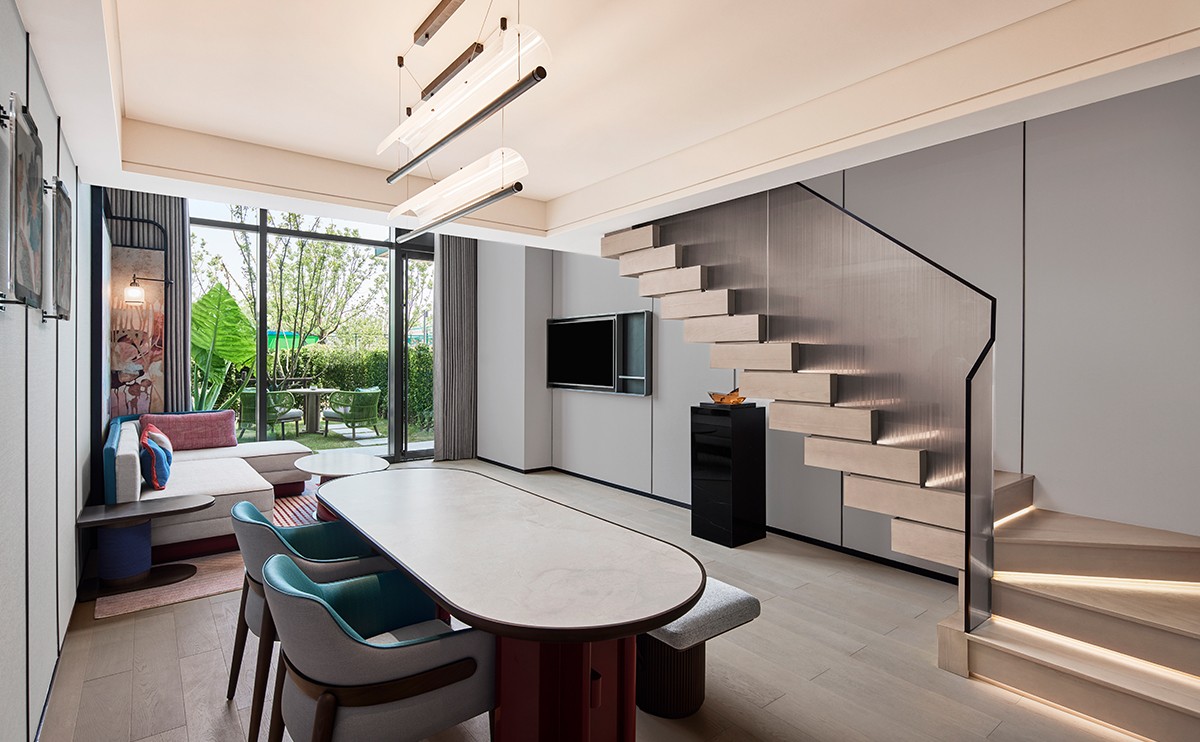 72平方米的嘉悦里庭院复式套房以江南院落为灵感,下层直通私属庭院